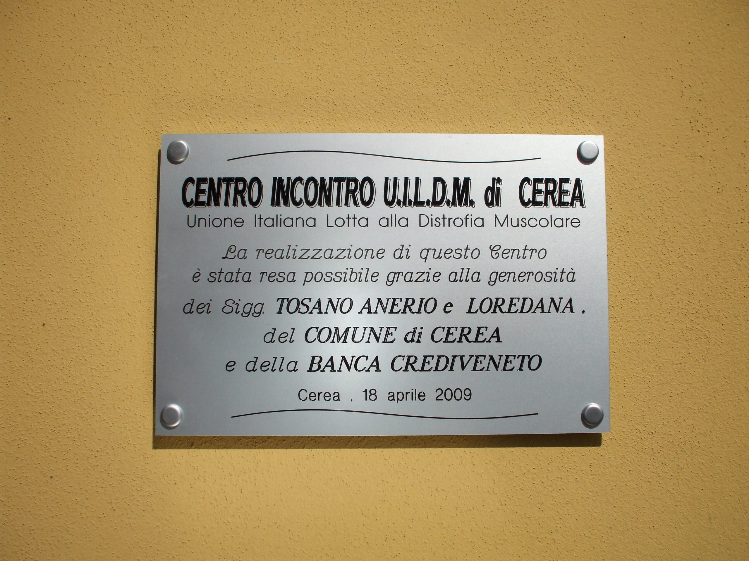 Il 18/04/2009, la UILDM di Verona ha inaugurato a Cerea il “Centro Incontro UILDM”.